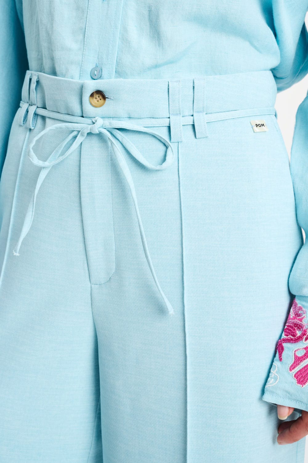 • Light blue trousers