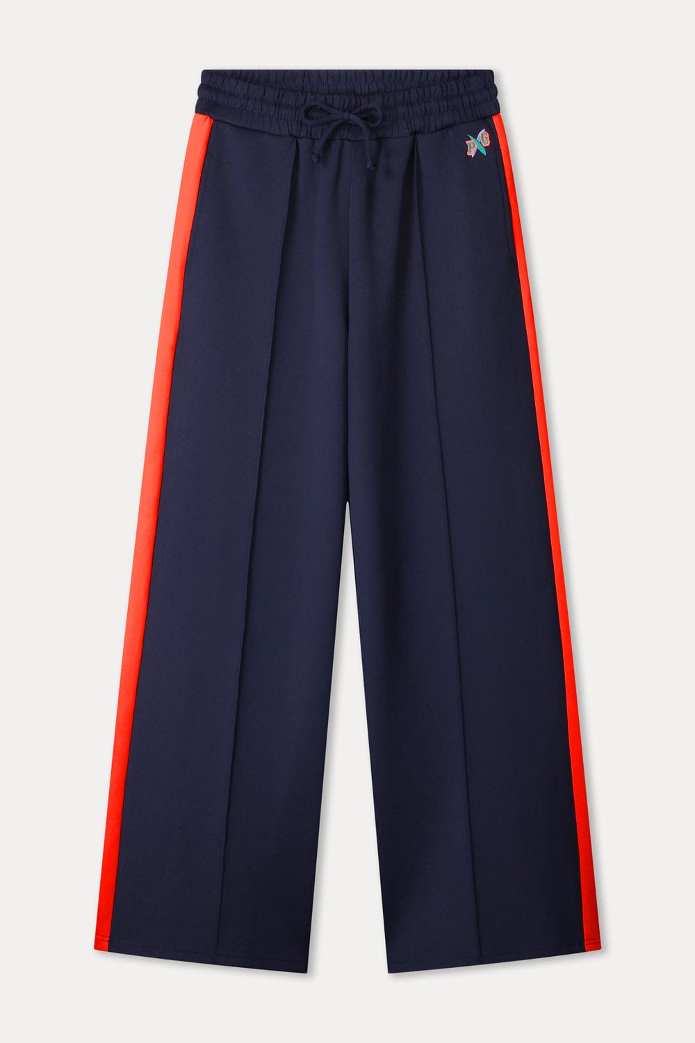 • High-waist fit with elastic waistband and drawstring