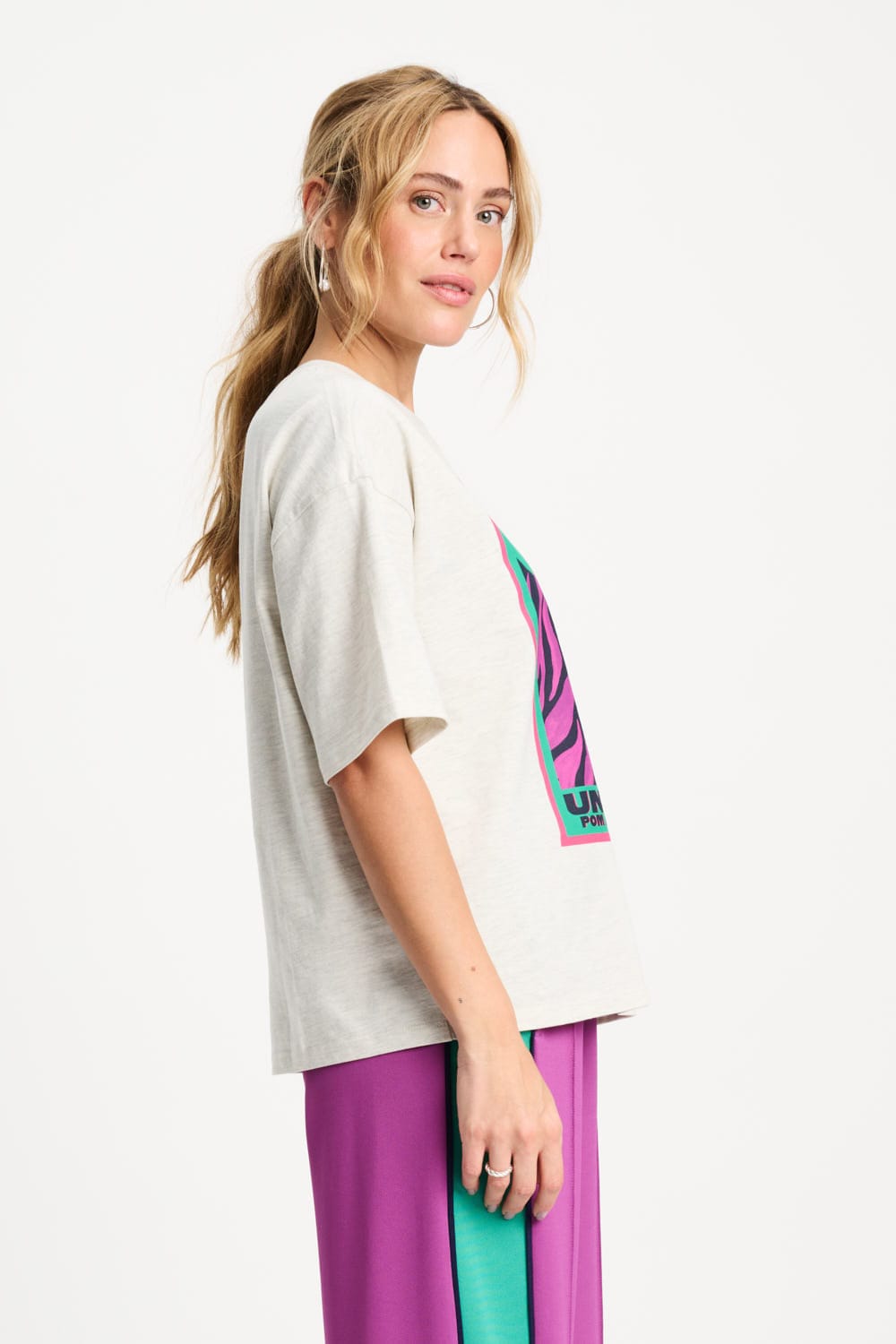 Fit: The T-shirt has a wide fit and short sleeves. The model in the photo is 170 cm tall and is wearing size 36.